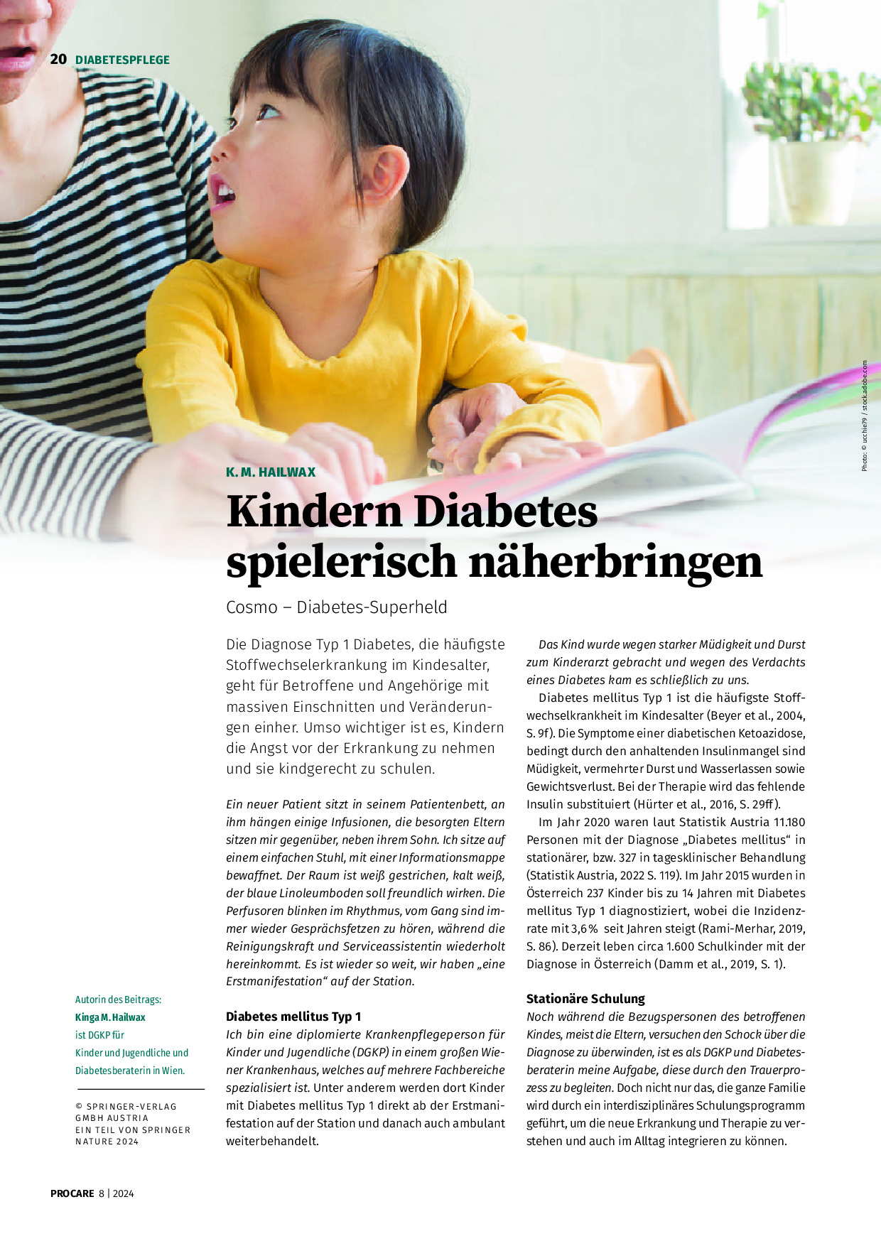 Kinga M. Hailwax, geboren 1990 in Warschau, ist Gesundheits- und Krankenpflegeperson für Kinder und Jugendliche an einem großen Krankenhaus mit Diabetesschwerpunkt in Wien und absolvierte dafür zusätzlich den Universitätslehrgang Diabetes Care in Graz.